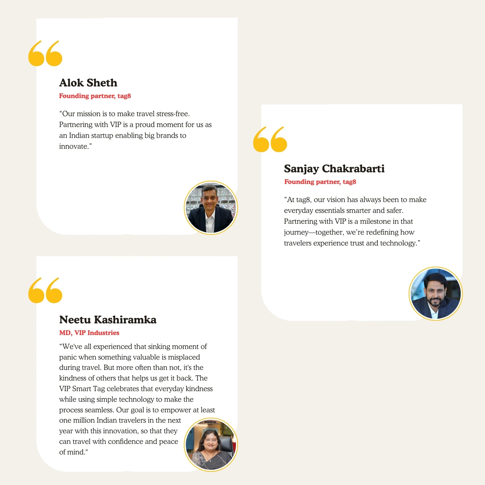 With every VIP Luggage worth ₹3000 and above, enjoy the Global Scan & Notify System—your partner for worry-free travel worldwide. Effortlessly traceable without batteries or apps, this ₹499 value comes complimentary, backed by the legacy of VIP Bags and the smart innovation of tag8. Travel with confidence and peace of mind.