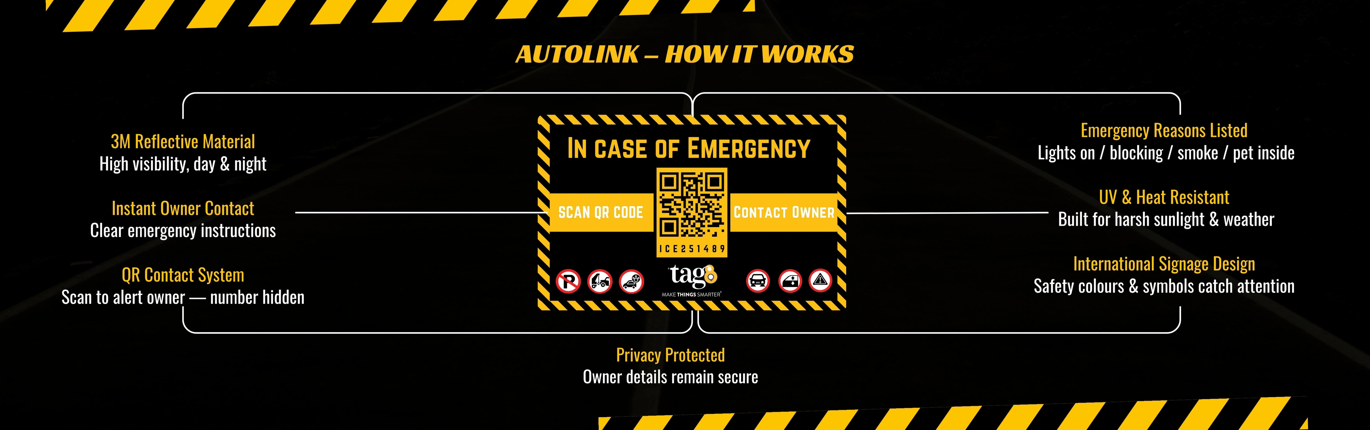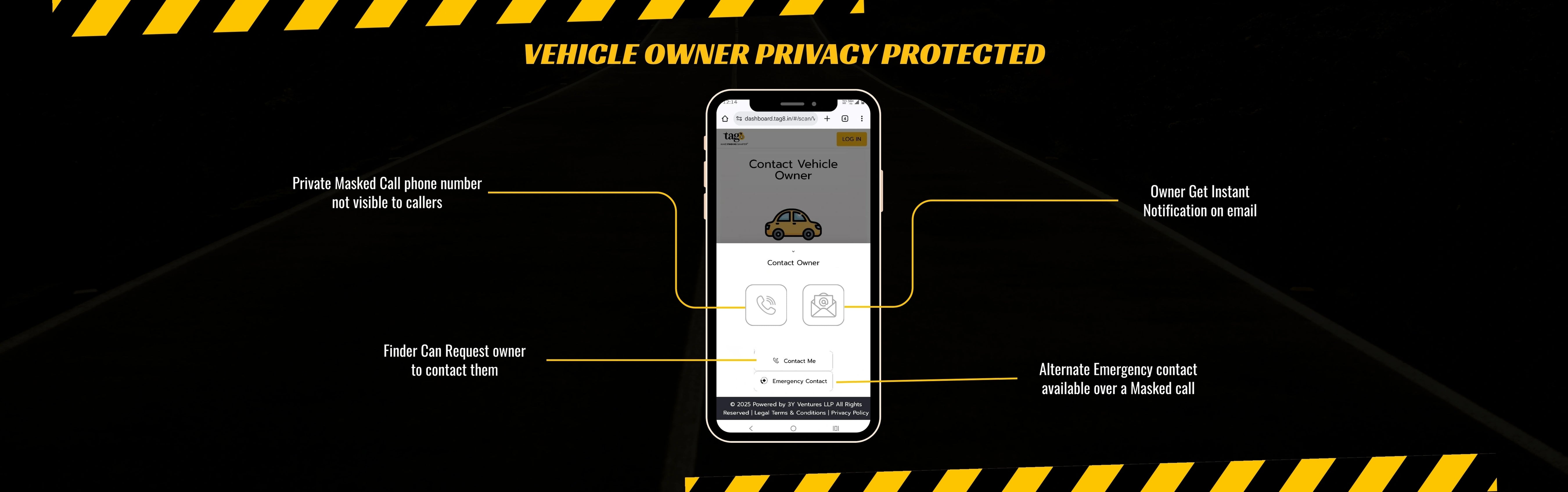 - To be registered for the service the unique owner id present on tag needs to be registered by scanning the QR code or simply call/message us on +91 9029008248 to activate or email us: support@tag8.in