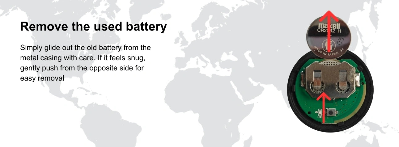 - दीर्घ बॅटरी आयुष्य - तुमच्या डिव्हाइस ट्रॅकरची बॅटरी वारंवार बदलण्याची गरज नाही. आमचा हरवलेल्या गोष्टींचा ट्रॅकर वापरावर अवलंबून 6-9 महिने टिकतो. बॅटरी स्टँडबाय वेळ 18 महिने टिकतो. खाच (बाजूला) हळूवारपणे खेचून तुमच्या स्मार्ट टॅगची बॅटरी बदला.