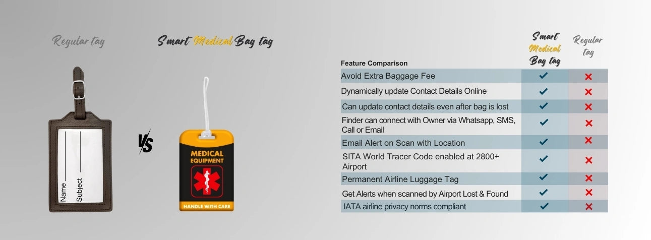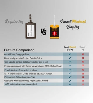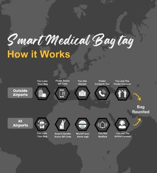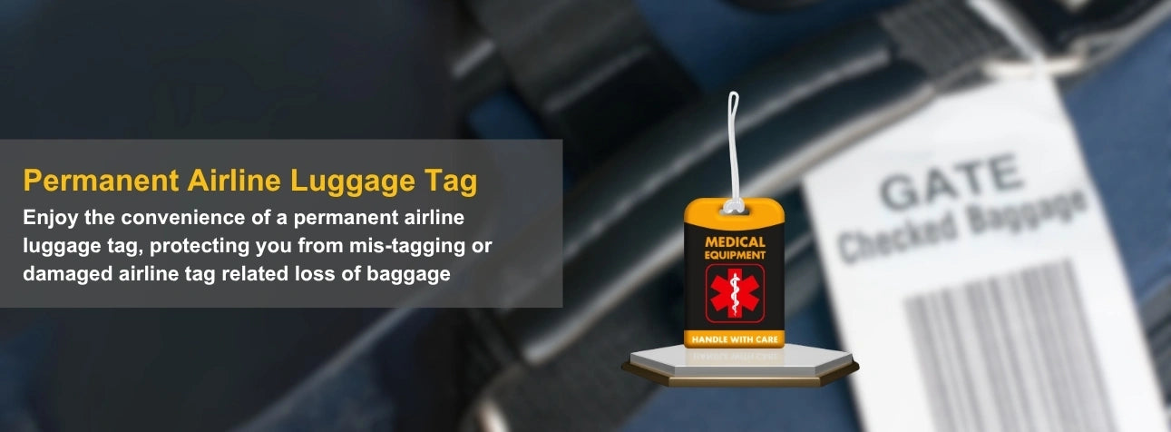 - [Versatile and Smart - Simplify Check-in] Digitally insert additional medical information, allergies, medications into your luggage tag. Simplify check-in and customs clearance with your clearly identified Medical Equipment tag on your carry-on bag