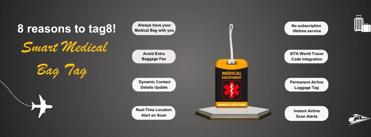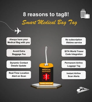 - Stay in Control of your Medical bag] Never be separated from your Medical Equipment again! Always have your critical medical equipment with you during travel. Be prepared wherever you go!. With tag8, a global leader in Smart Luggage IDs, easily and clearly identify your Medical Equipment