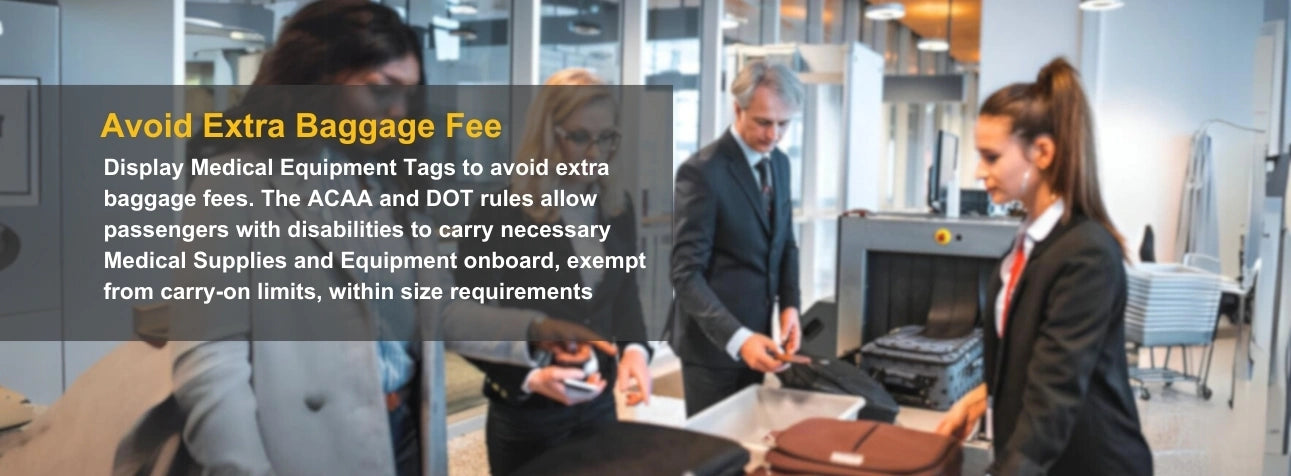 - [Avoid Extra Baggage Fees] Display the Medical Equipment Tags to avoid extra baggage fees. The Air Carrier Access Act (ACAA) and DOT rules prohibit discriminatory treatment of persons with disabilities in air transportation. The limit of one corry-on bag and one personal bag does not apply to medical supplies and/or medical equipment. Passengers with disabilities generally may carry medical supplies, equipment, medications and assistive devices on board the aircraft. Medical supplies must conform to airlines carry on dimensions.