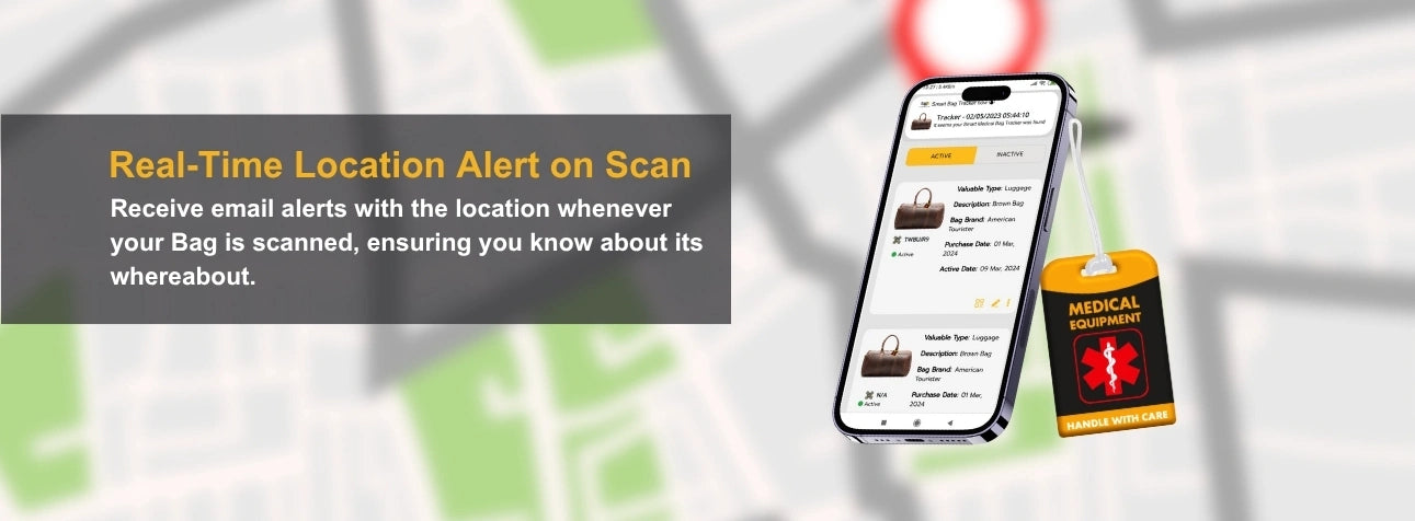 - [Instant Alerts of Misplaced Bags] Receive real-time email alerts with your Medical bag's location as soon as it is scanned by Finder, so you always know where it is