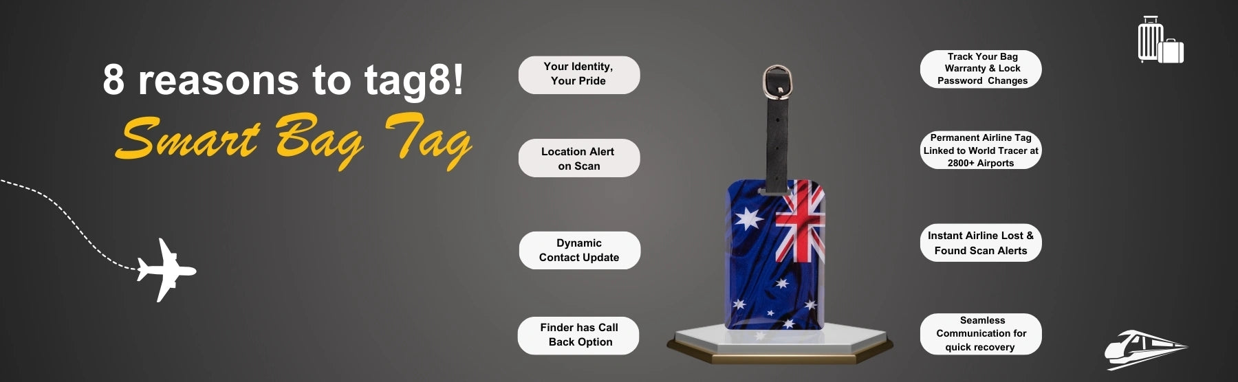 - Bag Security Tag needs to be registered for the service to be activated. The unique owner id present on backside of bag tag needs to be registered by scanning the QR code or simply call/message us on +91 9029008248 to activate or email us: support@tag8.in