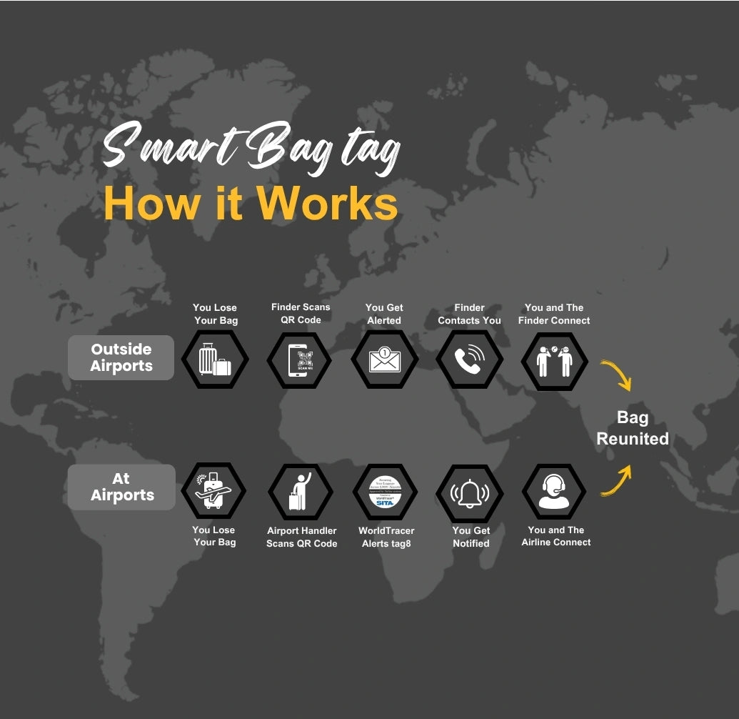 - [Stay in Control of your bags] Update your contact details online anytime, even after your bag is lost, for peace of mind. Relevant both in and outside airline systems, perfect for local travels, and smarter than a name tag