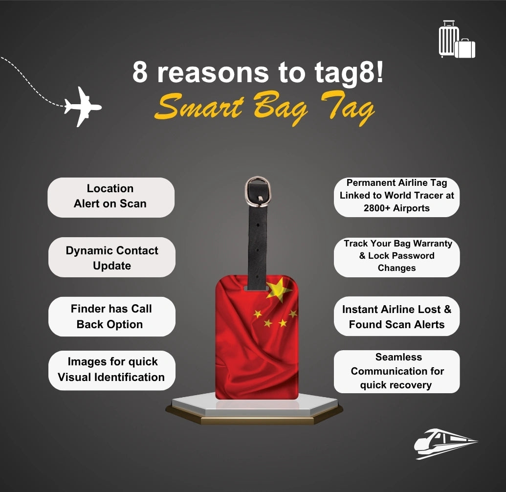 - Bag Security Tag needs to be registered for the service to be activated. The unique owner id present on backside of bag tag needs to be registered by scanning the QR code or simply call/message us on +91 9029008248 to activate or email us: support@tag8.in