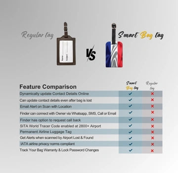 - [Stay in Control of your bags] Update your contact details online anytime, even after your bag is lost, for peace of mind. Relevant both in and outside airline systems, perfect for local travels, and smarter than a name tag