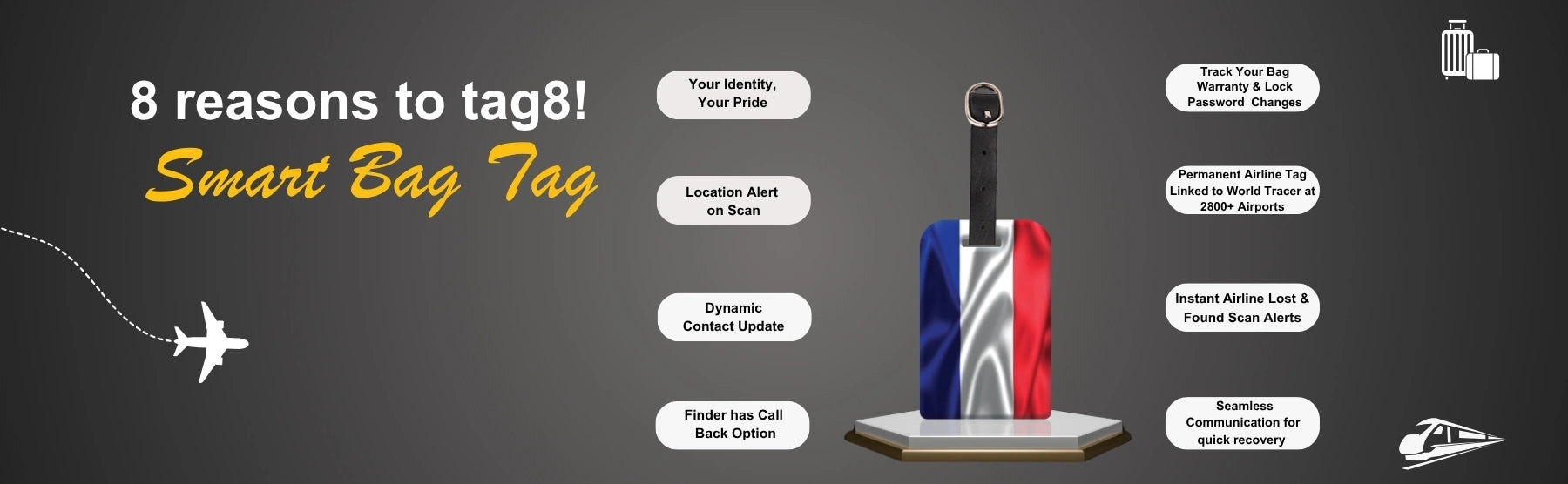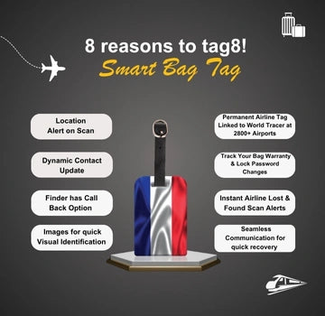 - Bag Security Tag needs to be registered for the service to be activated. The unique owner id present on backside of bag tag needs to be registered by scanning the QR code or simply call/message us on +91 9029008248 to activate or email us: support@tag8.in