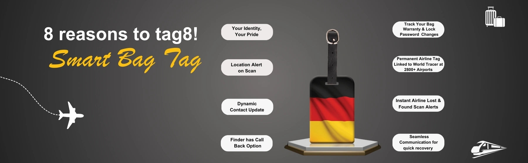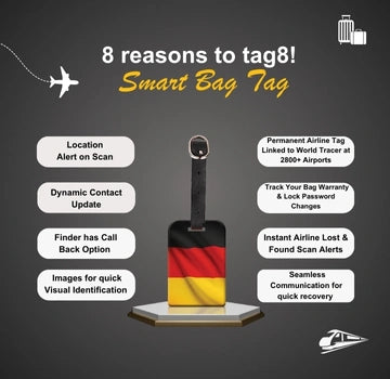 • Germany QR Bag Tag by tag8 for secure luggage recovery