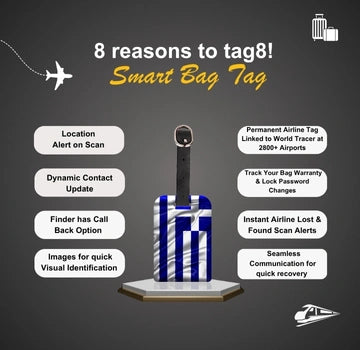 - Bag Security Tag needs to be registered for the service to be activated. The unique owner id present on backside of bag tag needs to be registered by scanning the QR code or simply call/message us on +91 9029008248 to activate or email us: support@tag8.in