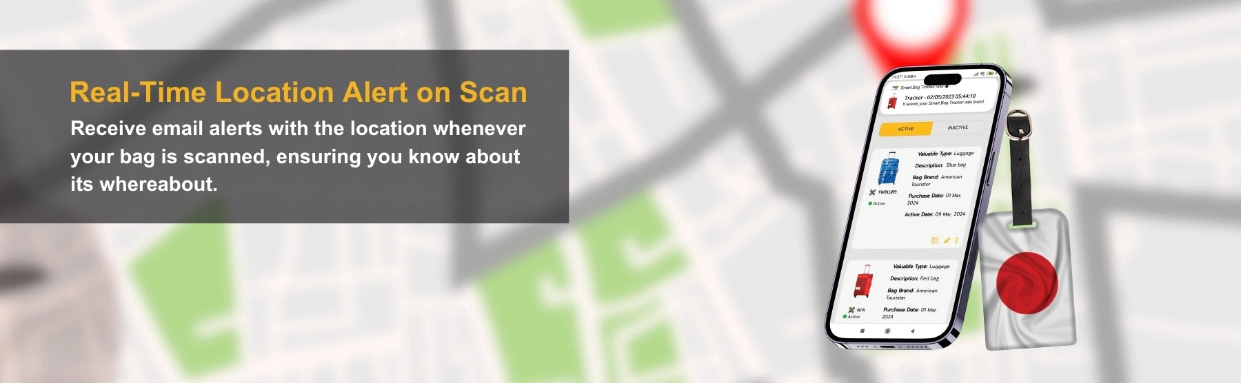- [Instant Alerts of misplaced bags] Receive real-time email alerts with your bag's location as soon as it is scanned by Finder, so you always know where it is. Also, receive alerts when Lost luggage handlers scan you bag at 2800+ Airports