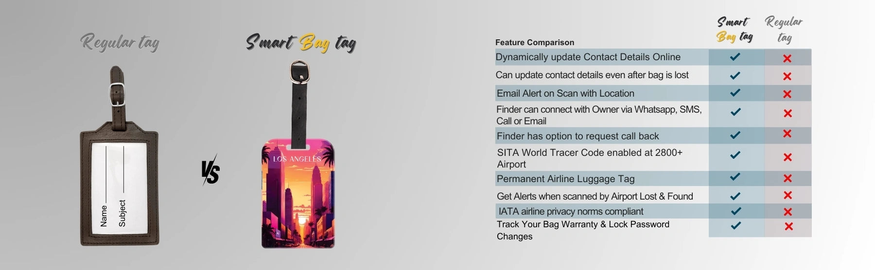 - [ Celebrate Los Angeles ] Show your love for Los Angeles with our unique smart bag tag featuring an iconic image of Hollywood Boulevard. It also makes for a great gift for friends and family!