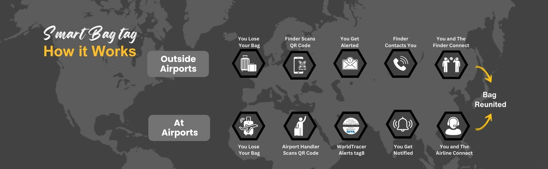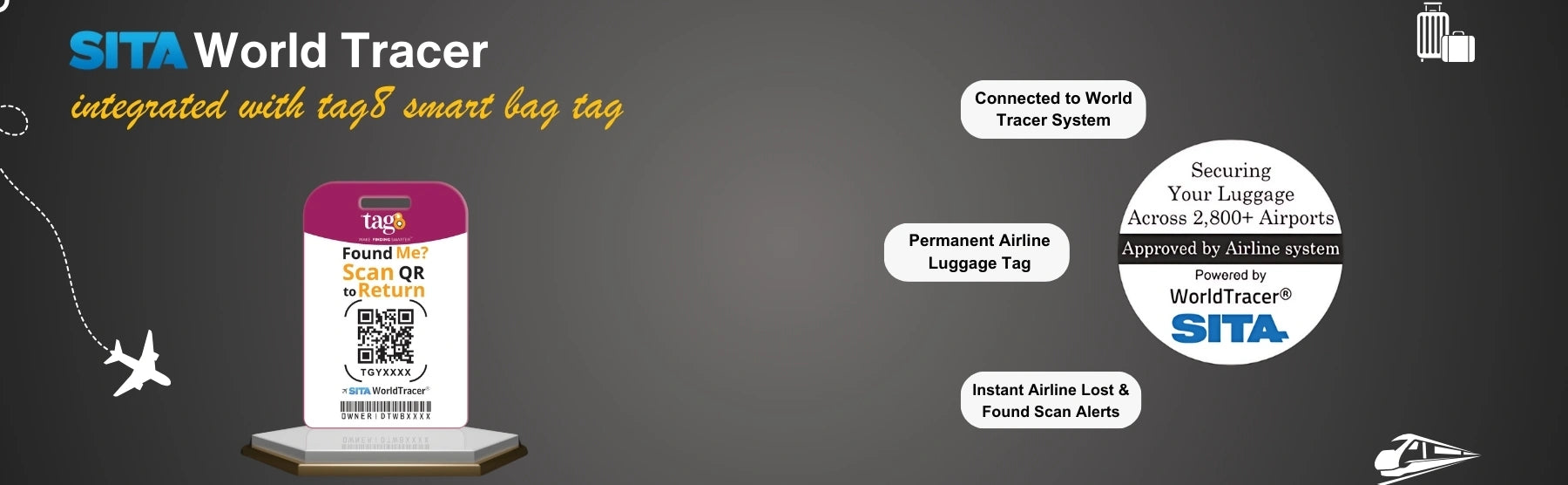 - [Seamless Airport Tracking] Benefit from integration with over 2800 airports worldwide for efficient lost and found tracking. Connect your bags with the SITA World Tracer System