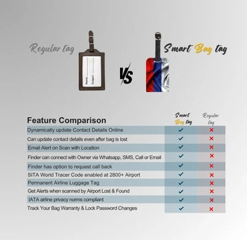 - [Stay in Control of your bags] Update your contact details online anytime, even after your bag is lost, for peace of mind. Relevant both in and outside airline systems, perfect for local travels, and smarter than a name tag