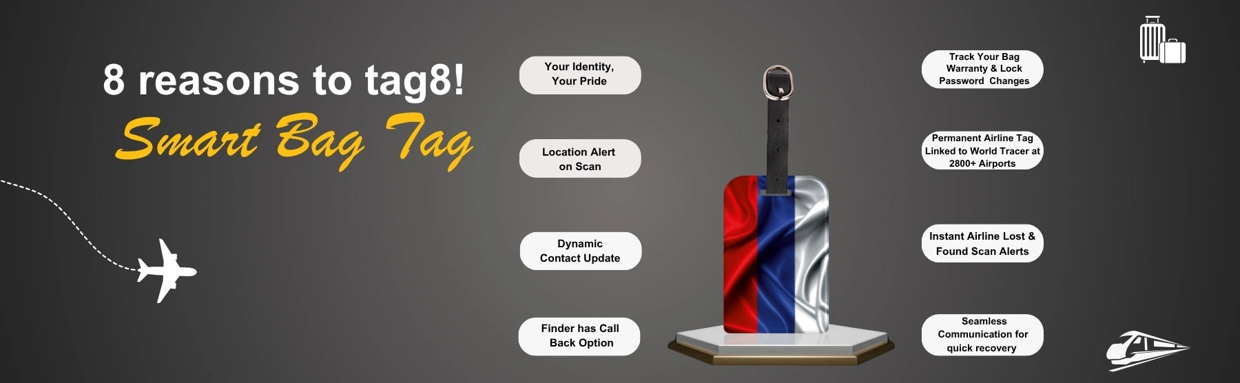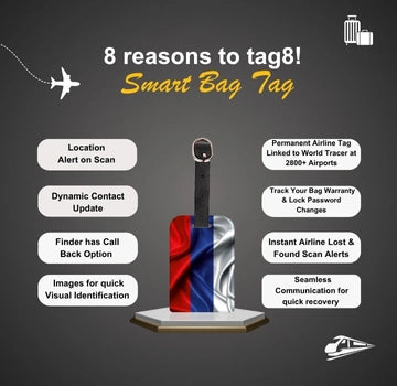 - Bag Security Tag needs to be registered for the service to be activated. The unique owner id present on backside of bag tag needs to be registered by scanning the QR code or simply call/message us on +91 9029008248 to activate or email us: support@tag8.in