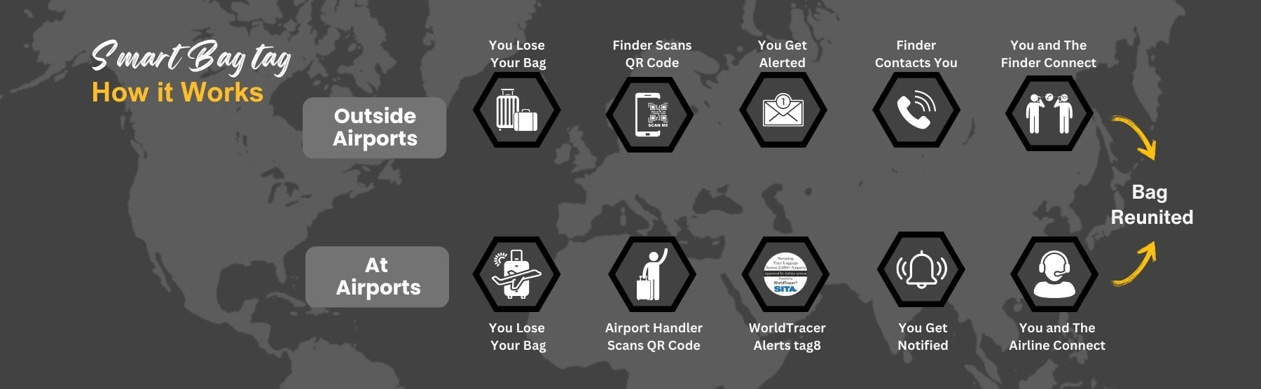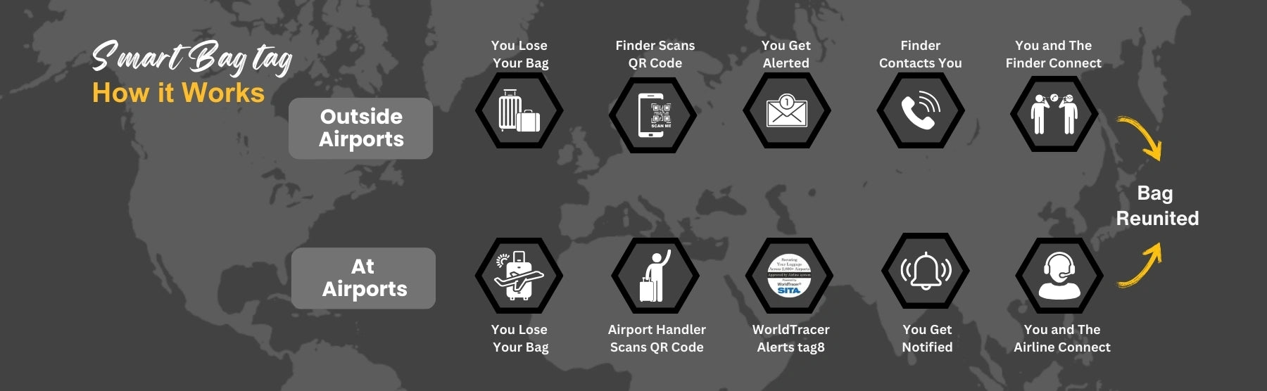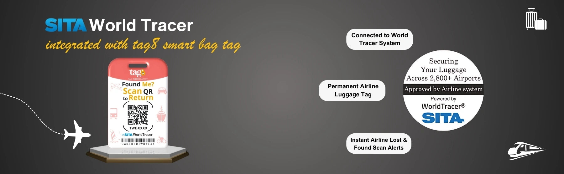 - [Seamless Airport Tracking] Benefit from integration with over 2800 airports worldwide for efficient lost and found tracking. Connect your bags with the SITA World Tracer System