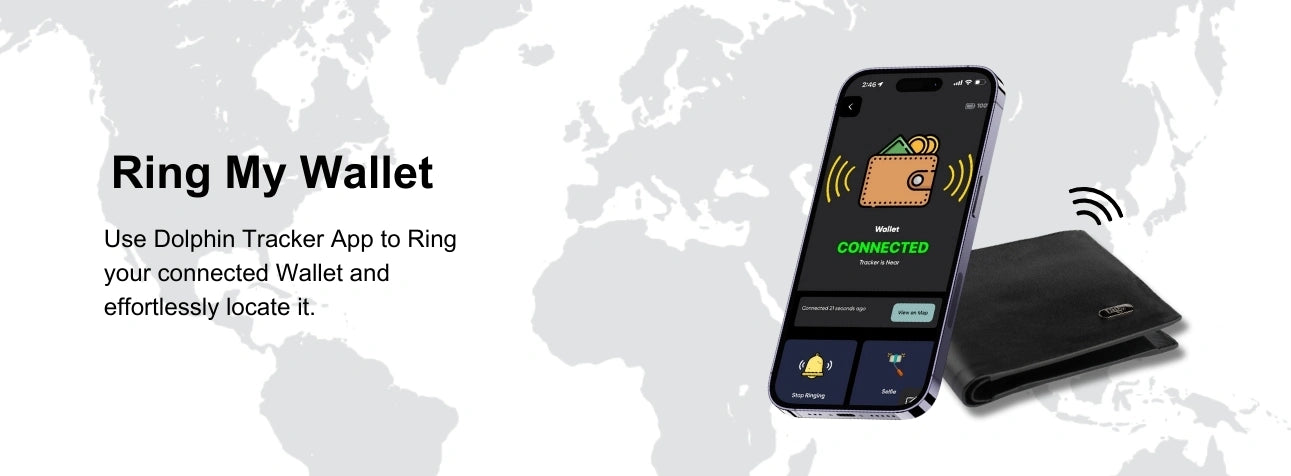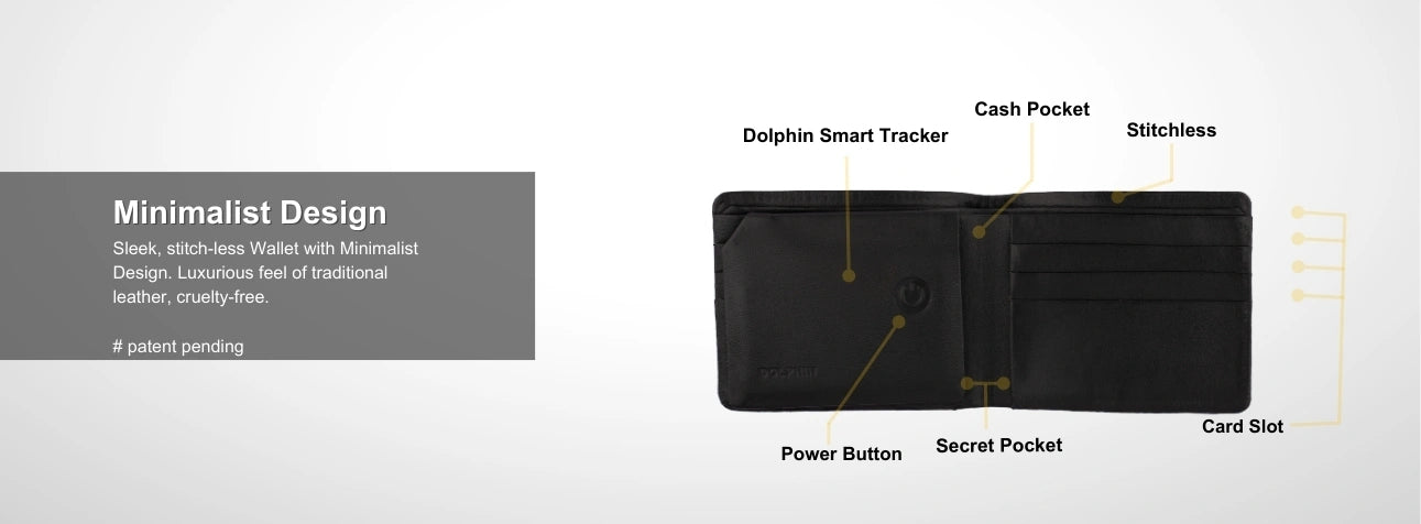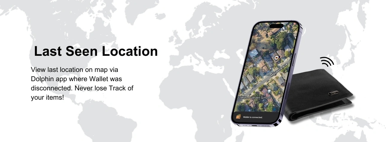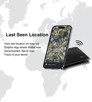 - कार्यक्षम स्मार्ट वॉलेट - पुरुषांसाठी आमच्या स्मार्ट पर्ससह तुमचे रोख आणि कार्ड सुरक्षित करा. या स्लिम वॉलेटमध्ये (ब्लूटूथ लो एनर्जी) बीएलई-आधारित ट्रॅकर आहे जो तुमचे मोबाइल डिव्हाइस ट्रॅकरच्या मर्यादेत असताना जीपीएस थेट स्थान देतो. डॉल्फिन ट्रॅकर अॅप रेंजच्या बाहेर गेल्यावर शेवटचे पाहिलेले स्थान दाखवते.