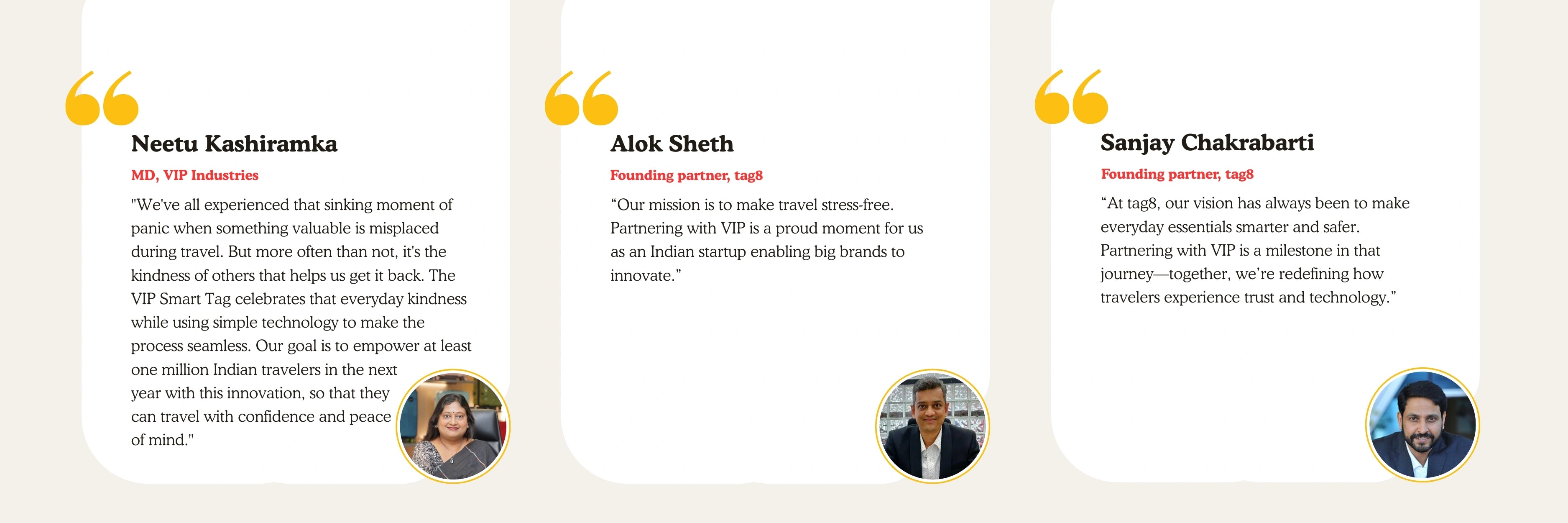 With every VIP Luggage worth ₹3000 and above, enjoy the Global Scan & Notify System—your partner for worry-free travel worldwide. Effortlessly traceable without batteries or apps, this ₹499 value comes complimentary, backed by the legacy of VIP Bags and the smart innovation of tag8. Travel with confidence and peace of mind.