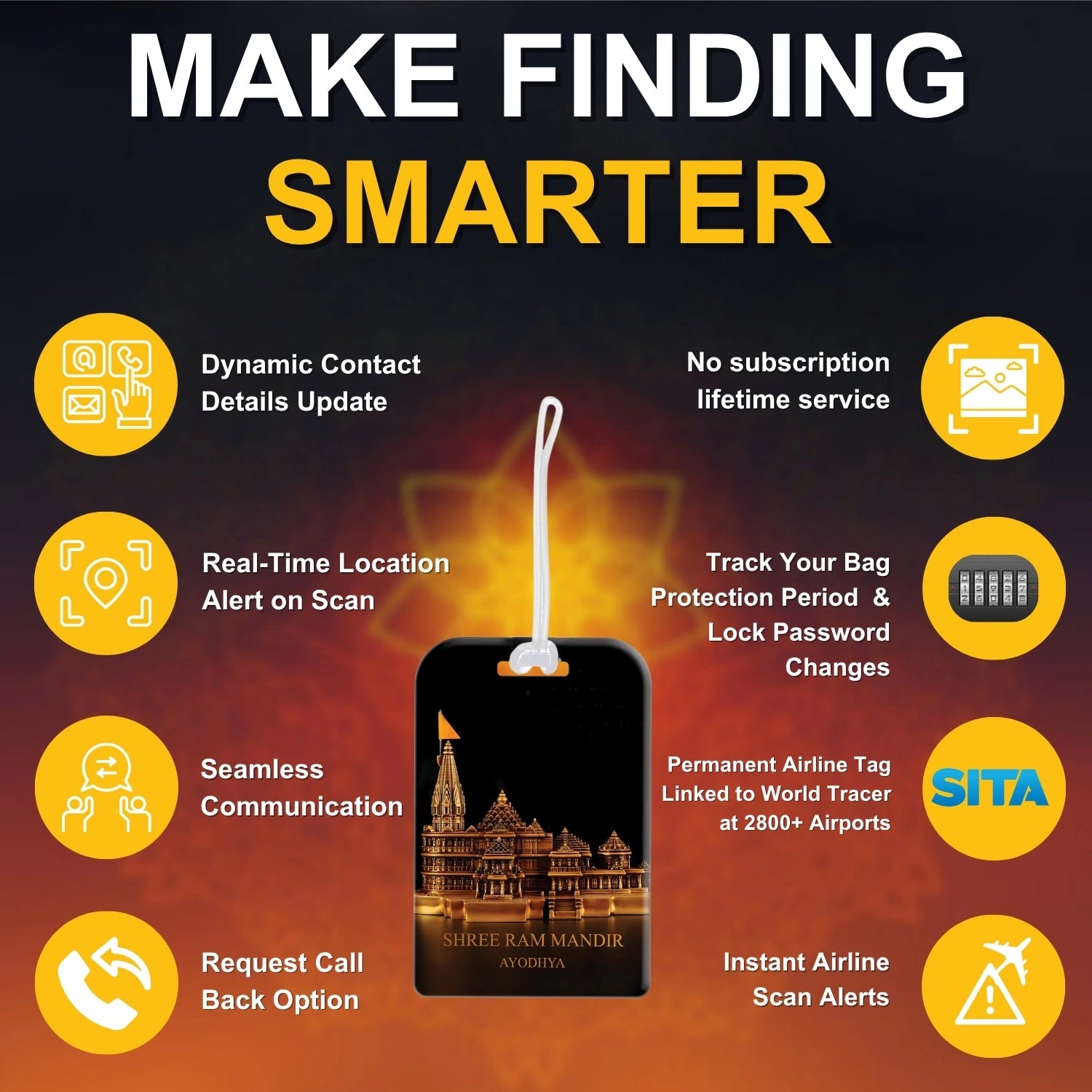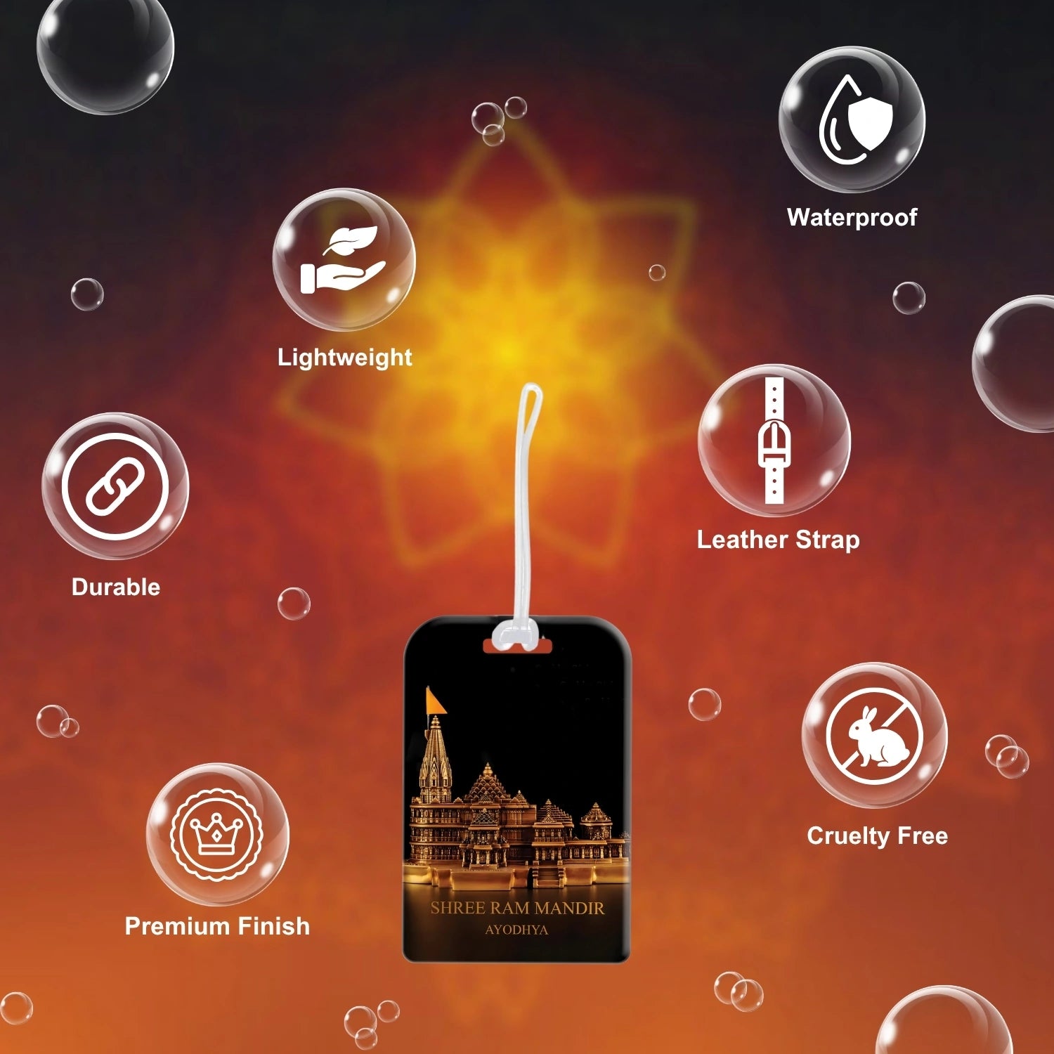 - [Divine Ram Mandir Luggage Tag] – Celebrate the spirit of faith with this exclusive Ram Mandir-themed tag. A unique way to showcase your devotion while adding a sacred touch to your luggage.