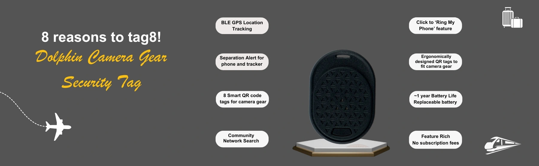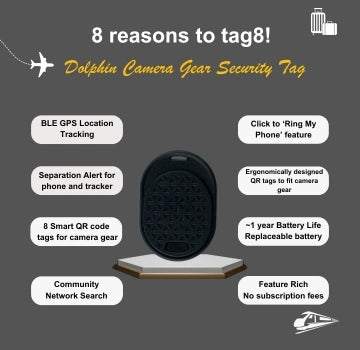 - [விரிவான கேமரா பாதுகாப்பு] டால்பின் கேமரா பாதுகாப்பு கியர் உங்கள் கேமரா உபகரணங்களுக்கு ஒப்பிடமுடியாத பாதுகாப்பை வழங்குகிறது. இதில் ஒரு டால்பின் மேக்ஸ் ப்ளூடூத் டிராக்கர் மற்றும் 8 ஸ்கேன் செய்யக்கூடிய QR குறியீடு டேக்குகள் உள்ளன, இது உங்கள் கேமரா, லென்ஸ்கள், முக்காலி, ஃபிளாஷ் மற்றும் பிற பாகங்கள் பாதுகாப்பாக இருப்பதை உறுதி செய்கிறது.