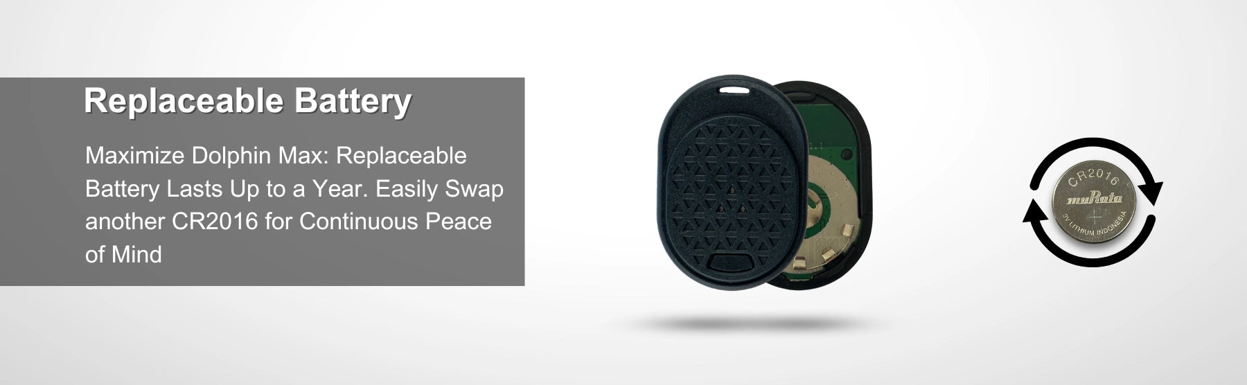 - [நீண்ட காலம் நீடிக்கும், மாற்றக்கூடிய பேட்டரி] டால்பின் மேக்ஸ் டிராக்கர் 1 வருடம் வரை பேட்டரி ஆயுளைக் கொண்டுள்ளது மற்றும் எளிதில் மாற்றக்கூடிய CR2016 நாணய பேட்டரியைப் பயன்படுத்துகிறது, இது உங்கள் கேமரா கியர் நீண்ட காலத்திற்குப் பாதுகாக்கப்படுவதை உறுதி செய்கிறது.