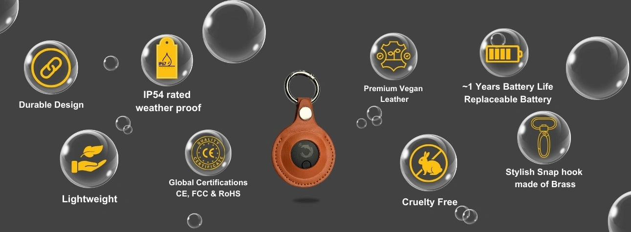 - [ஸ்டைலிஷ் கேஸுடன் கூடிய மலிவு விலை ப்ளீ டிராக்கர்] டால்பின் ப்ரோ என்பது சிறிய மற்றும் இலகுரக ப்ளீ டிராக்கர் ஆகும். பிரீமியம் வீகன் லெதர் கேஸ் வழங்கப்பட்டுள்ளதால், நீங்கள் கண்காணிக்க விரும்பும் பல்வேறு பொருட்களுடன் இதை எளிதாக இணைக்க முடியும்.