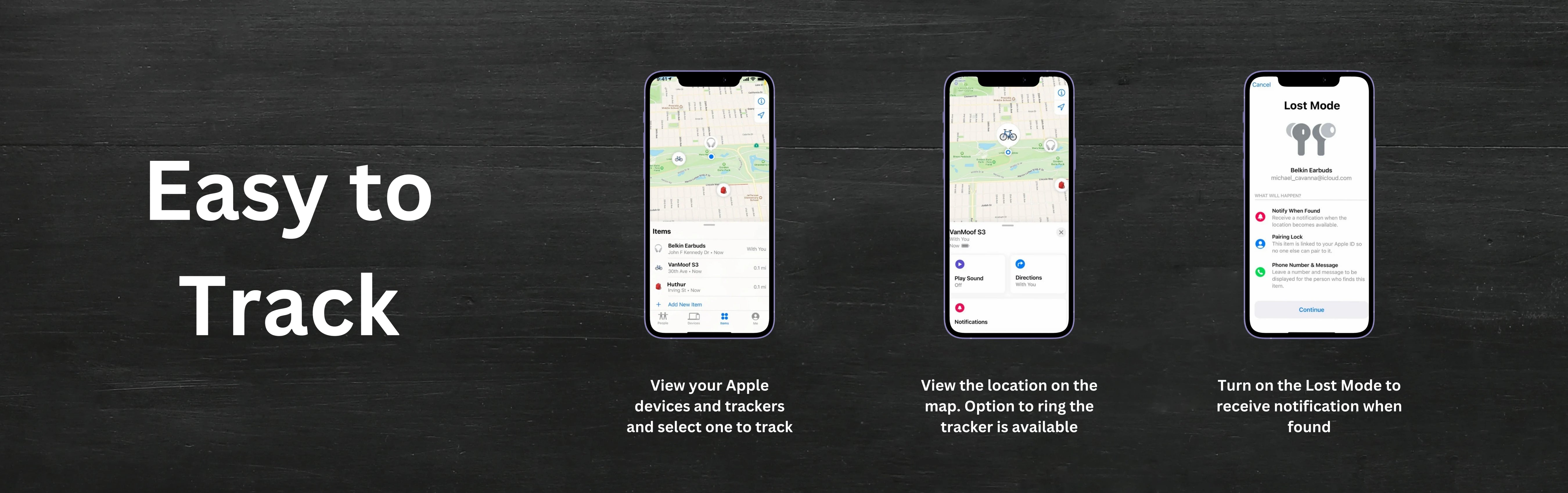 - [ஆப்பிளின் ஃபைண்ட் மை நெட்வொர்க் மூலம் உலகளாவிய கண்காணிப்பு] புளூடூத் வரம்பைத் தாண்டி உங்கள் உருப்படி தொலைந்துவிட்டதா? லாஸ்ட் பயன்முறையைச் செயல்படுத்தி, மில்லியன் கணக்கான ஆப்பிள் சாதனங்களால் இயக்கப்படும் ஃபைண்ட் மை நெட்வொர்க்கை அதைக் கண்காணிக்க உங்களுக்கு உதவ அனுமதிக்கவும். அது கண்டுபிடிக்கப்பட்டதும் தானியங்கி அறிவிப்பைப் பெறுங்கள்.
