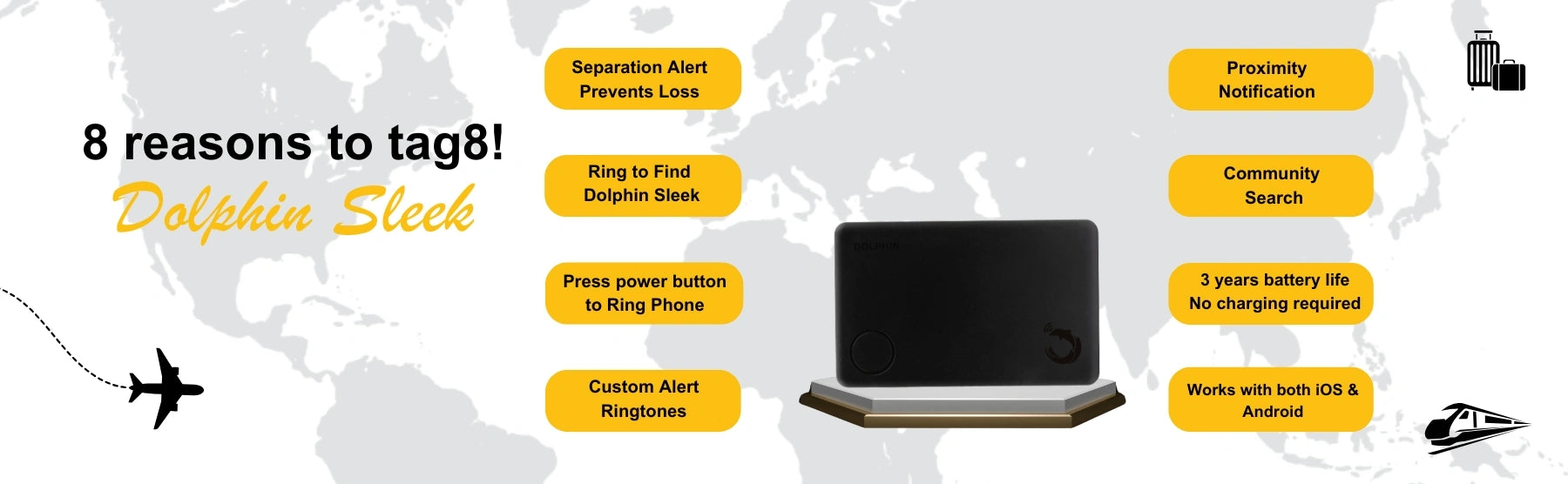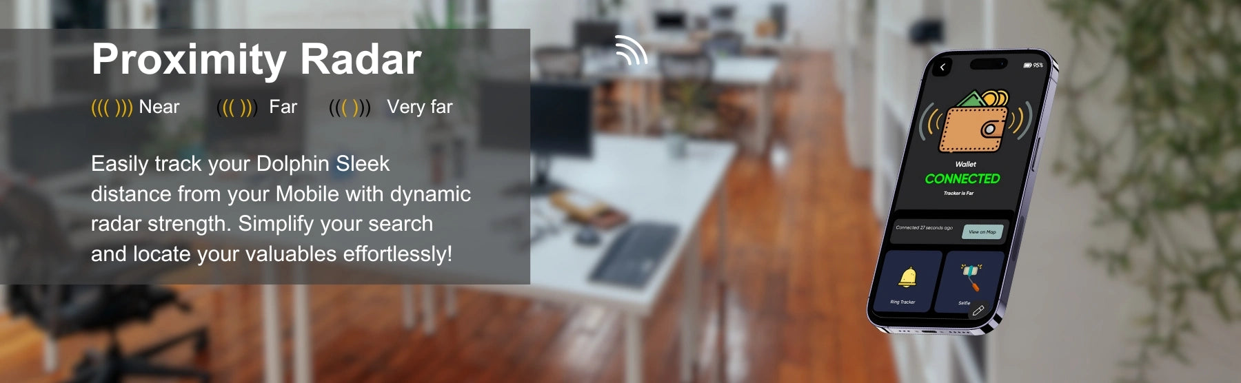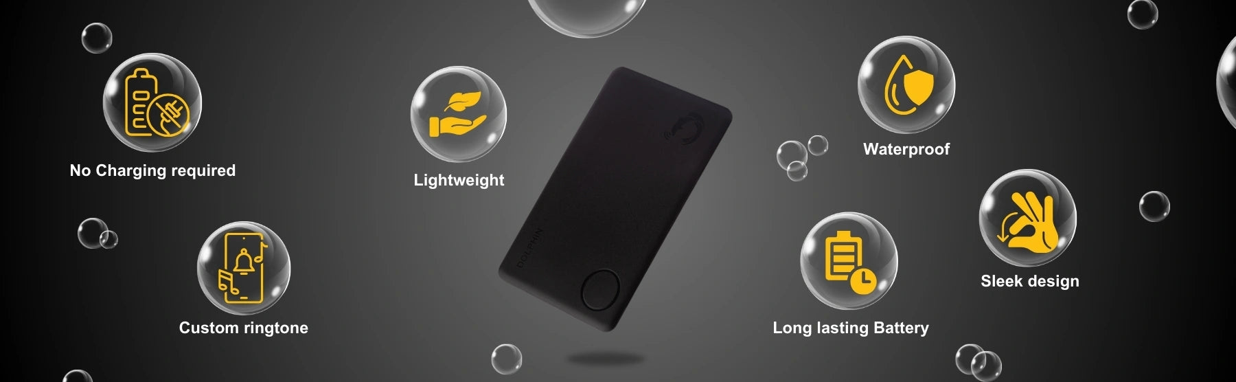 - [ஸ்லீக் ப்ளீ டிராக்கர்] டால்பின் ஸ்லீக் 3 மிமீ தடிமன் மட்டுமே கொண்டது மற்றும் இலகுரக (10 கிராம்) ப்ளீ டிராக்கர் ஆகும். நீங்கள் கண்காணிக்க விரும்பும் பல்வேறு பொருட்களில் இதை ஸ்லைடு செய்வது எளிது.