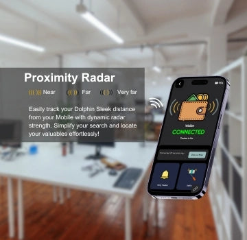 - [வரம்பு & கண்காணிப்பு] டால்பின் ஸ்லீக் வெளிப்புறங்களில் 250+ அடி வரை லோஎஸ் வரம்பையும், உட்புறங்களில் சுமார் 30+ அடி வரையிலான வரம்பையும் கொண்டுள்ளது. இதன் பீப் ஒலி 98 db வரை இருக்கும். வரம்பிற்குள் இருக்கும்போது நீங்கள் டால்பின் டிராக்கர் செயலியைப் பயன்படுத்தி உங்கள் கண்ணாடிகளை ரிங் செய்யலாம். வரம்பிற்கு வெளியே இருக்கும்போது, மற்ற டால்பின் டிராக்கர் செயலி பயனர்கள் டால்பின் ஃபைண்டர் நெட்வொர்க்கில் அதைக் கண்டறிய உங்களுக்கு உதவுவார்கள். கடைசியாகப் பார்த்த வரைபட இருப்பிடத்தையும் நீங்கள் சரிபார்க்கலாம்.