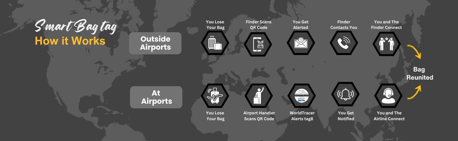 - [தனியுரிமைப் பாதுகாப்பு] அடையாளத் திருட்டைத் தடுக்கும் மற்றும் தனியுரிமையை உறுதி செய்யும் வழக்கமான பெயரிடப்பட்ட பை குறிச்சொற்களைப் போலல்லாமல், உங்கள் தனிப்பட்ட விவரங்கள் QR குறியீட்டுடன் பாதுகாக்கப்பட்டுள்ளன என்பதை உறுதிப்படுத்திக் கொள்ளுங்கள்.