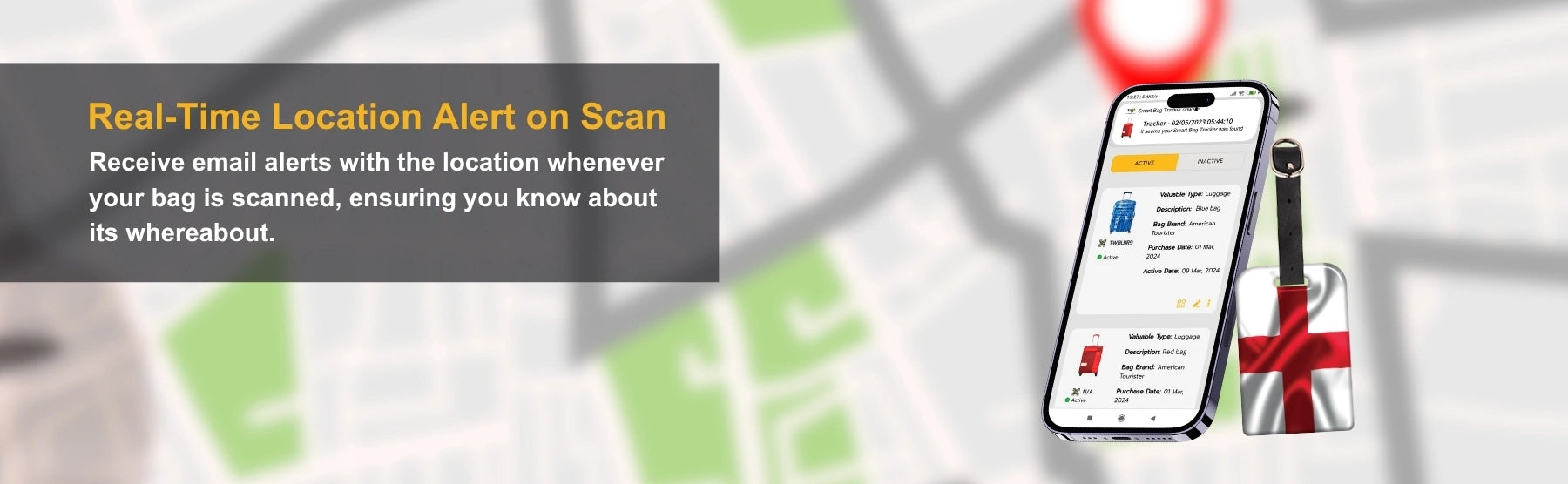 - [தவறாக வைக்கப்பட்ட பைகள் பற்றிய உடனடி எச்சரிக்கைகள்] ஃபைண்டர் மூலம் உங்கள் பை ஸ்கேன் செய்யப்பட்டவுடன் அதன் இருப்பிடத்துடன் நிகழ்நேர மின்னஞ்சல் விழிப்பூட்டல்களைப் பெறுங்கள், இதனால் அது எங்கே இருக்கிறது என்பதை நீங்கள் எப்போதும் அறிவீர்கள். மேலும், தொலைந்த சாமான்களைக் கையாளுபவர்கள் 2800+ விமான நிலையங்களில் உங்கள் பையை ஸ்கேன் செய்யும்போது விழிப்பூட்டல்களைப் பெறுங்கள்.