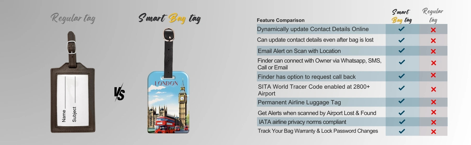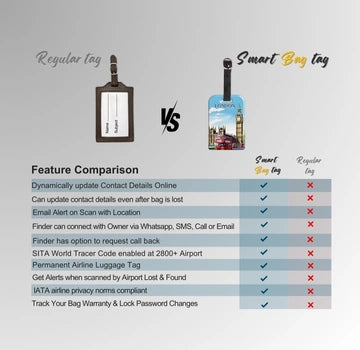 - [தனியுரிமைப் பாதுகாப்பு] அடையாளத் திருட்டைத் தடுக்கும் மற்றும் தனியுரிமையை உறுதி செய்யும் வழக்கமான பெயரிடப்பட்ட பை குறிச்சொற்களைப் போலல்லாமல், உங்கள் தனிப்பட்ட விவரங்கள் QR குறியீட்டுடன் பாதுகாக்கப்பட்டுள்ளன என்பதை உறுதிப்படுத்திக் கொள்ளுங்கள்.