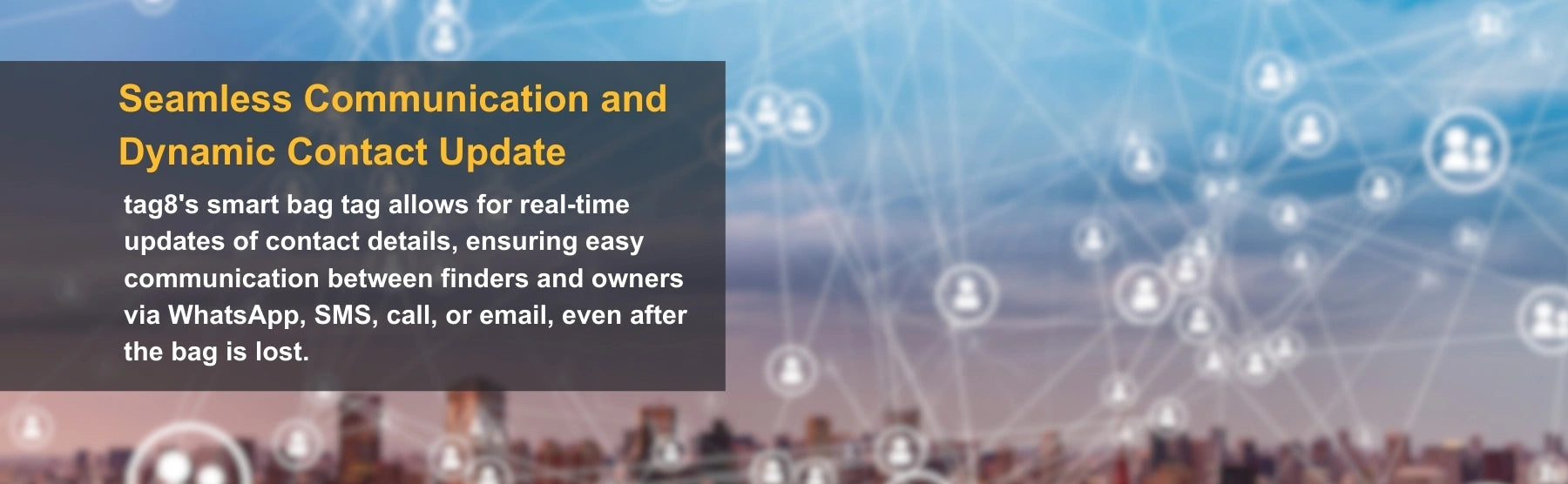 - சேவை செயல்படுத்தப்படுவதற்கு பை பாதுகாப்பு டேக்கை பதிவு செய்ய வேண்டும். பை டேக்கின் பின்புறத்தில் உள்ள தனித்துவமான உரிமையாளர் ஐடியை QR குறியீட்டை ஸ்கேன் செய்வதன் மூலம் பதிவு செய்ய வேண்டும் அல்லது செயல்படுத்த +91 9029008248 என்ற எண்ணில் எங்களை அழைக்கவும்/செய்தி அனுப்பவும் அல்லது support@tag8.in என்ற மின்னஞ்சல் முகவரிக்கு மின்னஞ்சல் அனுப்பவும்.