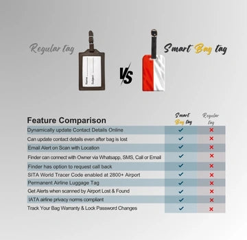 - [தனியுரிமைப் பாதுகாப்பு] அடையாளத் திருட்டைத் தடுக்கும் மற்றும் தனியுரிமையை உறுதி செய்யும் வழக்கமான பெயரிடப்பட்ட பை குறிச்சொற்களைப் போலல்லாமல், உங்கள் தனிப்பட்ட விவரங்கள் QR குறியீட்டுடன் பாதுகாக்கப்பட்டுள்ளன என்பதை உறுதிப்படுத்திக் கொள்ளுங்கள்.