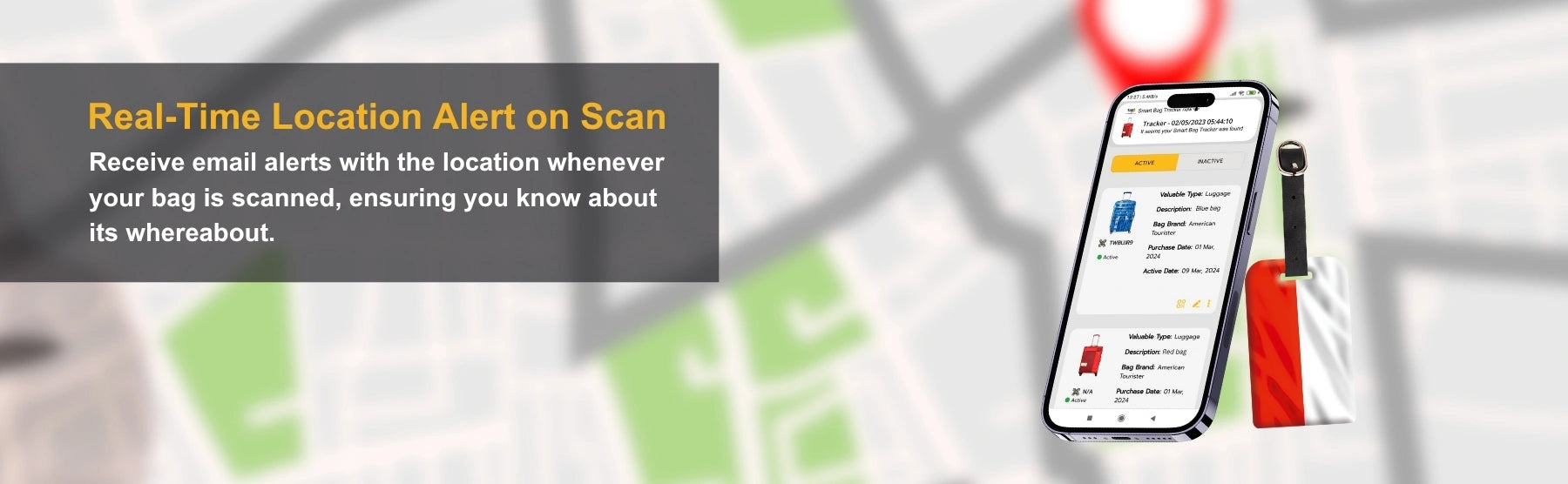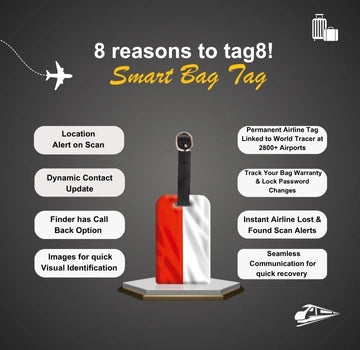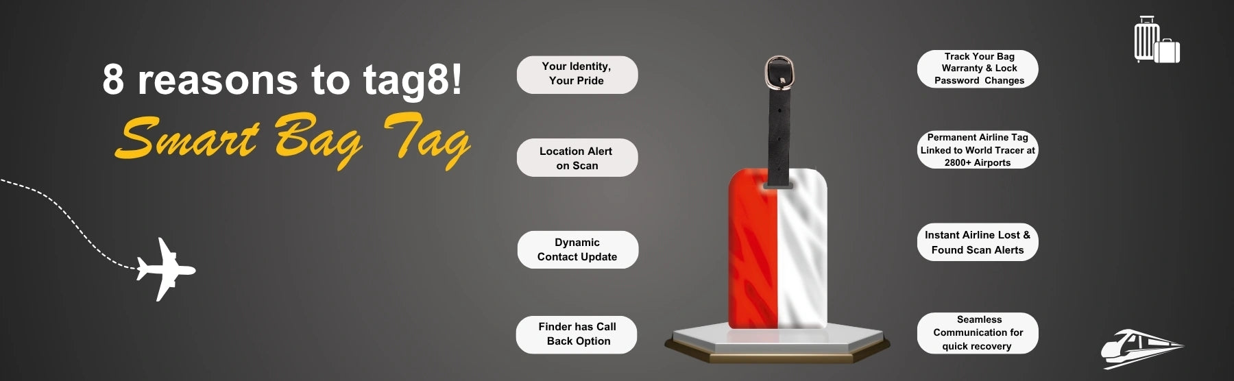 - சேவை செயல்படுத்தப்படுவதற்கு பை பாதுகாப்பு டேக்கை பதிவு செய்ய வேண்டும். பை டேக்கின் பின்புறத்தில் உள்ள தனித்துவமான உரிமையாளர் ஐடியை QR குறியீட்டை ஸ்கேன் செய்வதன் மூலம் பதிவு செய்ய வேண்டும் அல்லது செயல்படுத்த +91 9029008248 என்ற எண்ணில் எங்களை அழைக்கவும்/செய்தி அனுப்பவும் அல்லது support@tag8.in என்ற மின்னஞ்சல் முகவரிக்கு மின்னஞ்சல் அனுப்பவும்.