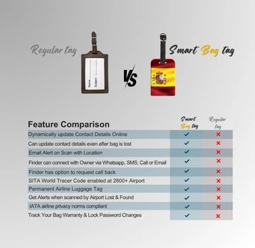 - [தனியுரிமைப் பாதுகாப்பு] அடையாளத் திருட்டைத் தடுக்கும் மற்றும் தனியுரிமையை உறுதி செய்யும் வழக்கமான பெயரிடப்பட்ட பை குறிச்சொற்களைப் போலல்லாமல், உங்கள் தனிப்பட்ட விவரங்கள் QR குறியீட்டுடன் பாதுகாக்கப்பட்டுள்ளன என்பதை உறுதிப்படுத்திக் கொள்ளுங்கள்.
