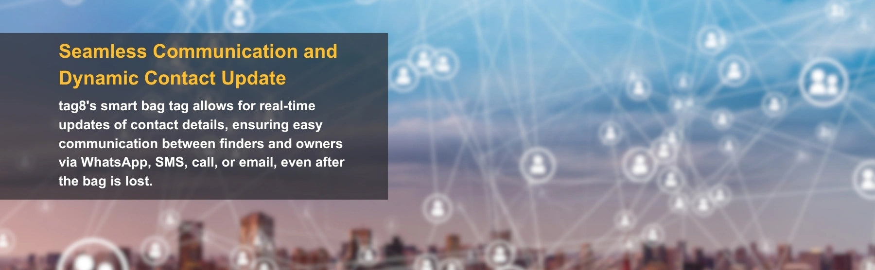 - சேவை செயல்படுத்தப்படுவதற்கு பை பாதுகாப்பு டேக்கை பதிவு செய்ய வேண்டும். பை டேக்கின் பின்புறத்தில் உள்ள தனித்துவமான உரிமையாளர் ஐடியை QR குறியீட்டை ஸ்கேன் செய்வதன் மூலம் பதிவு செய்ய வேண்டும் அல்லது செயல்படுத்த +91 9029008248 என்ற எண்ணில் எங்களை அழைக்கவும்/செய்தி அனுப்பவும் அல்லது support@tag8.in என்ற மின்னஞ்சல் முகவரிக்கு மின்னஞ்சல் அனுப்பவும்.