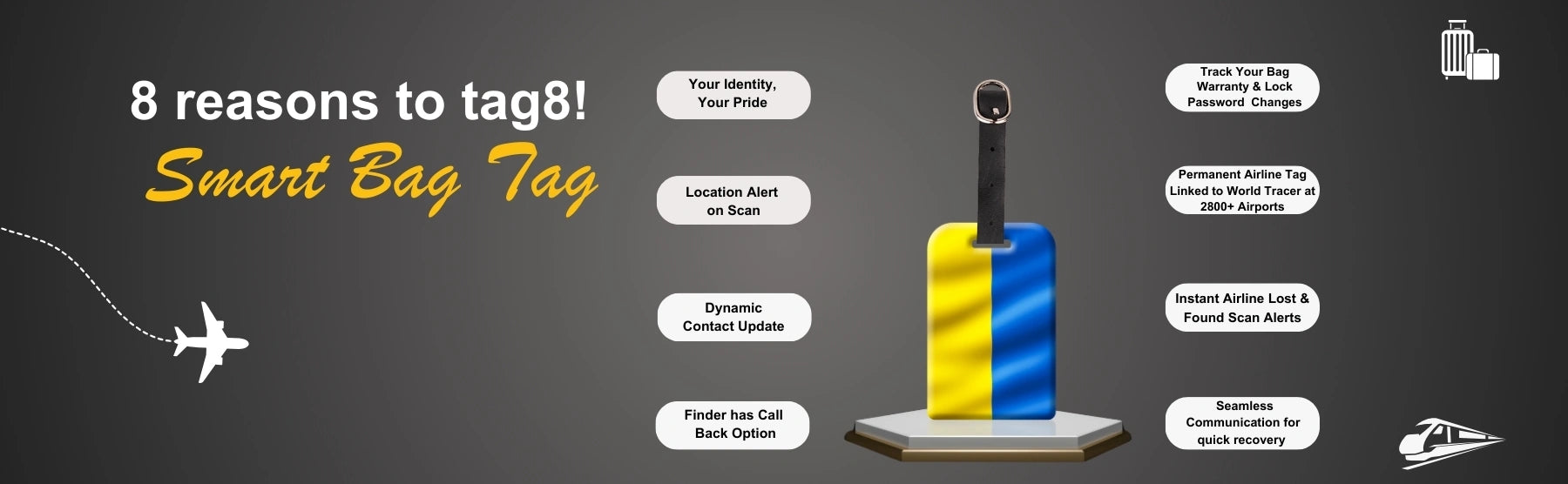 - சேவை செயல்படுத்தப்படுவதற்கு பை பாதுகாப்பு டேக்கை பதிவு செய்ய வேண்டும். பை டேக்கின் பின்புறத்தில் உள்ள தனித்துவமான உரிமையாளர் ஐடியை QR குறியீட்டை ஸ்கேன் செய்வதன் மூலம் பதிவு செய்ய வேண்டும் அல்லது செயல்படுத்த +91 9029008248 என்ற எண்ணில் எங்களை அழைக்கவும்/செய்தி அனுப்பவும் அல்லது support@tag8.in என்ற மின்னஞ்சல் முகவரிக்கு மின்னஞ்சல் அனுப்பவும்.