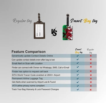 - [தனியுரிமைப் பாதுகாப்பு] அடையாளத் திருட்டைத் தடுக்கும் மற்றும் தனியுரிமையை உறுதி செய்யும் வழக்கமான பெயரிடப்பட்ட பை குறிச்சொற்களைப் போலல்லாமல், உங்கள் தனிப்பட்ட விவரங்கள் QR குறியீட்டுடன் பாதுகாக்கப்பட்டுள்ளன என்பதை உறுதிப்படுத்திக் கொள்ளுங்கள்.